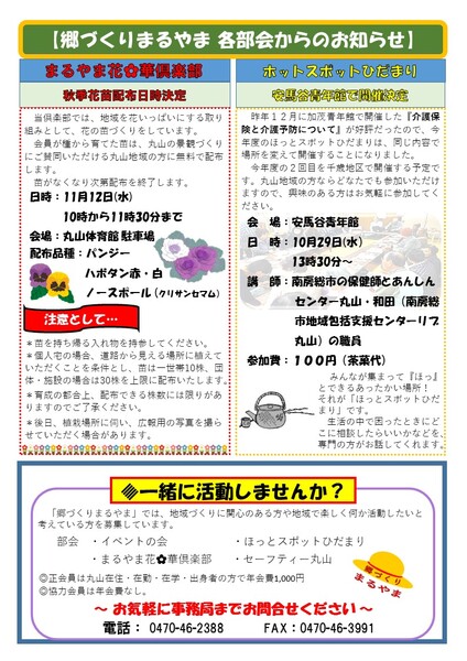 郷づくりまるやまの活動や丸山地区の情報をお知らせする