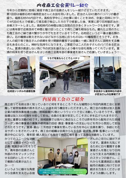 P3では、地域に根差す内房商工会と商工会会員さんにインタビューした様子を掲載。