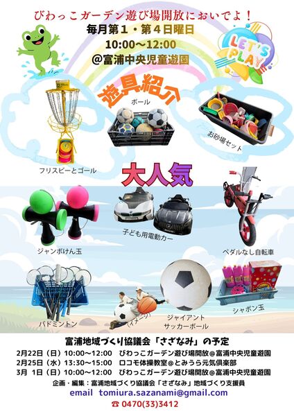 P4では、富浦中央児童遊園にて第1・4日曜日に実施している『びわっこガーデン遊び場開放』こちらで遊べる人気の遊具をご紹介します。みんなで遊びにきてね!