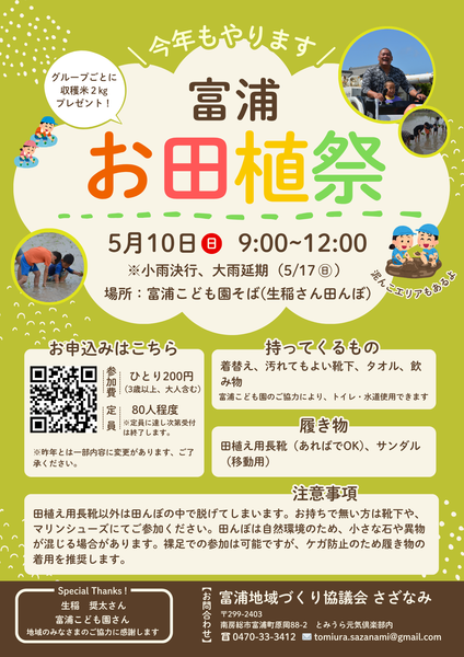 田植え用長靴以外は田んぼの中で脱げてしまいます。お持ちで無い方は靴下や、マリンシューズにてご参加ください。田んぼは自然環境のため、小さな石や異物が混じる場合があります。裸足での参加は可能ですが、ケガ防止のため履き物の着用を推奨します。
